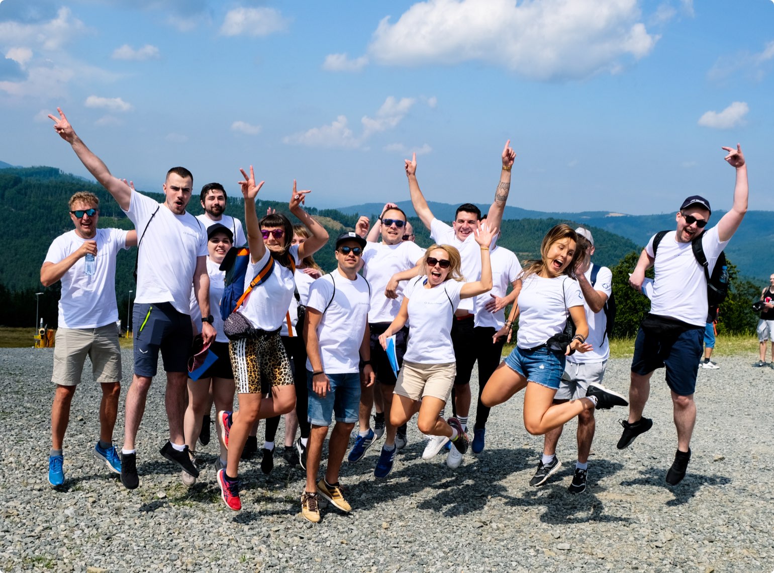 Choć praca zdalna jest już od dłuższego czasu ważnym elementem naszej kultury, nie zapominamy o regularnych spotkaniach i integracjach, aby móc jeszcze lepiej budować zespołowość i dbać o nasze relacje. W 2021 roku zrealizowaliśmy wiele pomysłów na eventy wewnętrzne i często organizowaliśmy różne firmowe spotkania. Ważnym punktem programu był wyjazd integracyjny w Szczyrku, na którym mieliśmy okazję aktywnie spędzić czas, a także wspólnie świętować nasze 6-ste urodziny. Wyjazd dostarczył nam wielu wrażeń – wzięliśmy udział w świetnej grze terenowej, bawiliśmy się na urodzinowym bankiecie, zorganizowaliśmy wspólnego grilla, a także rozegraliśmy emocjonujące, sportowe turnieje. I co najważniejsze – naprawdę się zintegrowaliśmy 🙂