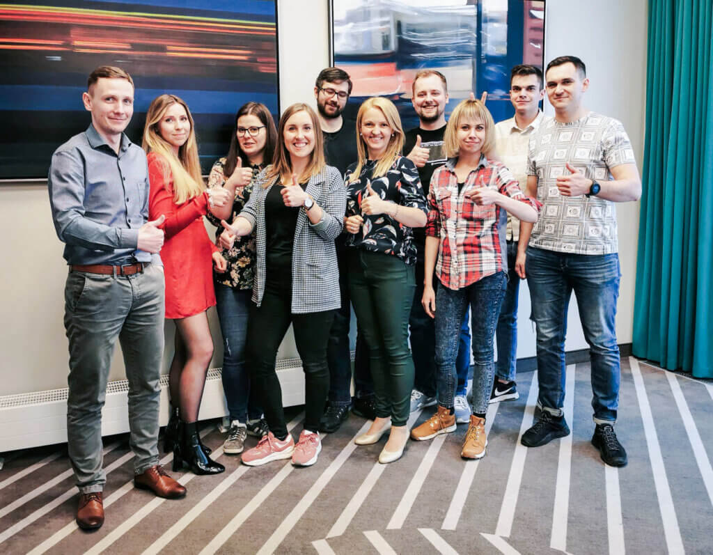 W związku z tym z pomocą Martyny Lempert (https://www.twojhrbp.pl/) zbadaliśmy opinię zespołu na temat naszego onboardingu oraz wielu aspektów ogólnofirmowych: benefitów, wynagrodzenia, satysfakcji z projektu, procesów wewnętrznych, czy komunikacji firmowej. Wszystkie wyniki zaprezentowaliśmy na spotkaniu firmowym i na tej podstawie zaproponowaliśmy szereg usprawnień.